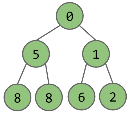 To convert a heap into an array, we simply read the values top-to-bottom and left-to-right. As such, the correct representation is [0, 5, 1, 8, 8, 6, 2].