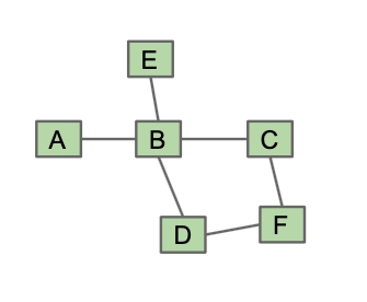 Run BFS starting from A for the graph above, and list the order in which vertices are visited. Break ties alphabetically.
