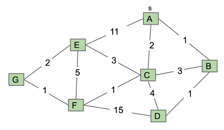 Ain the graph below. In what order are vertices visited? Break ties alphabetically.Run Kruskal's in the graph below. In what order are edges added to the tree? Break ties alphabetically.