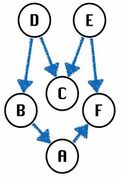 Answer: Valid orderings include: [D,B,A,E,C,F] and [E,D,C,B,A,F].