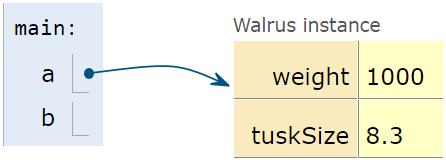 The Walrus we've created is anonymous, in the sense that it has been created, but it is not stored in any variable. Let's now turn to variables that store objects.