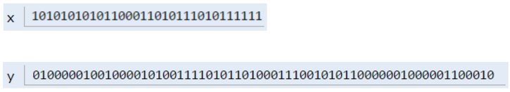 This code will print false, since x and y each contain the 64 bit address of two different arrays in memory, albeit two arrays which happen to contain the same information. If we want to compare the two content of the two arrays, we can use Arrays.equals instead, e.g.