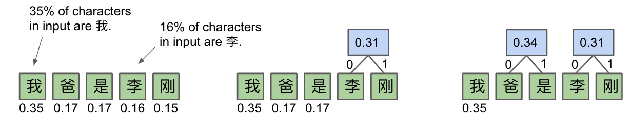 HashMap/TreeMap: create a map from character to bit sequence, calling the