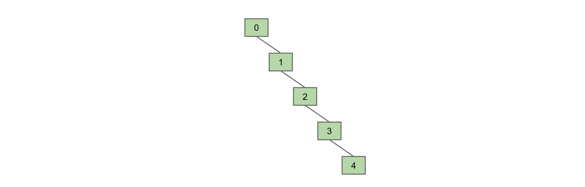 There is a potential performance issue with QuickUnion: the tree can become very long. In this case, finding the root of an item (find(item)) becomes very expensive. Consider the tree below: